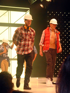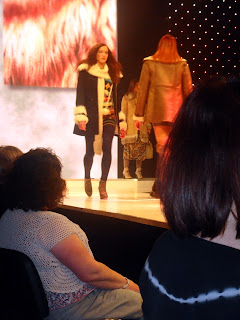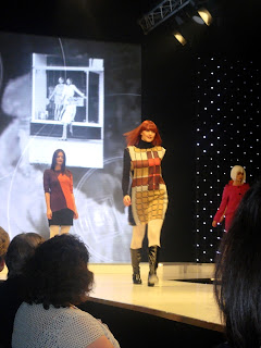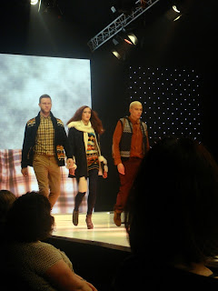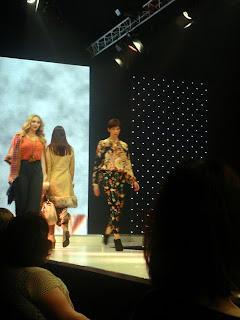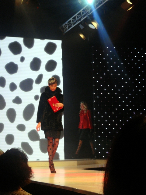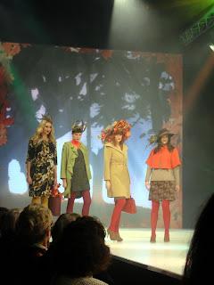 This season’s show was as I’d hoped - well styled and brilliantly choreographed. It kicked off with fabulous fashions from John Lewis. I have to just say at this point, that John Lewis’s fashion department is getting stronger and stronger with each season helped by the likes of Whistles, NW3 and Reiss (I can feel another post coming on...watch this space). The outfits didn’t disappoint, bold prints, tweeds and coloured tights created a brilliant concoction, think heritage but with a twist. I loved these burgundy tights teamed with pillar-box red shoes (apologies for the appalling photo – must invest in a decent camera). The men were sporting tweed jackets and denim, with coloured shoes adding a splash of personality.