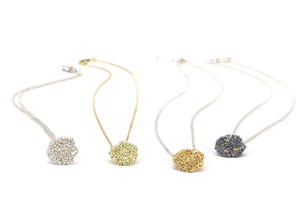 | Silver/oxidised silver/gold plate silver berry necklaces by Hannah Bedford from £115 |