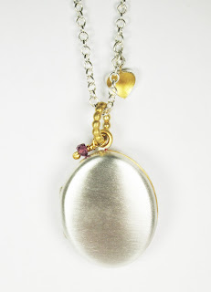 | Silver, gold plate heart and garnet locket by Clare Chandler- £135 |