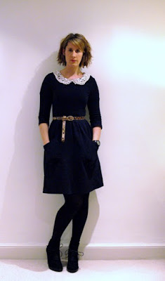 Instead, I opted for this blue skater dress from Whistles teamed with shoe boots. I’ve had this dress for a while and I’ve worn it loads, so I thought I’d change the look a little by wearing a peter-pan collar t-shirt underneath it. I love the way it changes the look of the dress and makes it a little more girly. It does take some time to arrange it so it’s comfortable though. The belt I normally wear with this dress vanished when I was rushing around on a shopping trip with a client. It was one of those ones that just ‘pop’s’ together so I was bound to lose it eventually. Anyway, I ran out of time to find another belt so had to grab this one, it’s a little too big for my waist so I tried to make a feature of it...I think it works?