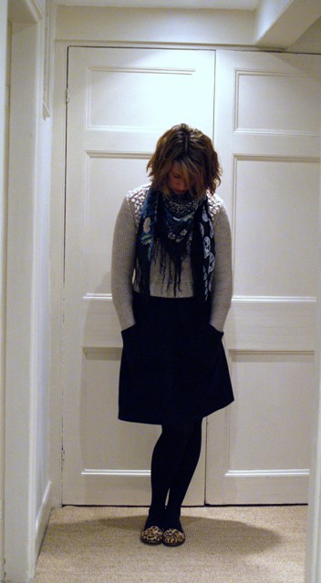 When I arrived home, the weather had gotten really crazy and I was frozen, so I layered my new favourite chunky jumper over the dress and added this scarf. I’d forgotten how difficult it is to take decent photos inside when it’s dark so apologies for the poor photography skills. I’m in the office all day tomorrow so hopefully I’ll be able to make the most of the daylight.