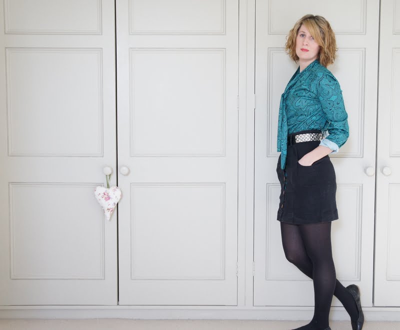 Days in the office are the perfect excuse to experiment with my outfits a little, but I’ve got to be careful as I can get a bit carried away and I’ve got loads to do today. I bought this vintage dress about a year ago in York, when Al and I visited for a weekend. If you’ve never been, it’s well worth a visit it’s crammed full with quirky shops and vintage boutiques. You'll probably notice that this dress is a little different for me as it’s quite a bright colour and is patterned, two things that I don’t wear a lot. I’d normally team this dress with some leopard print loafers...I love the way they clash, but today that’s not allowed so it’s black flats instead. I felt a little girly in it so added a studded waist belt to give the look some edge.