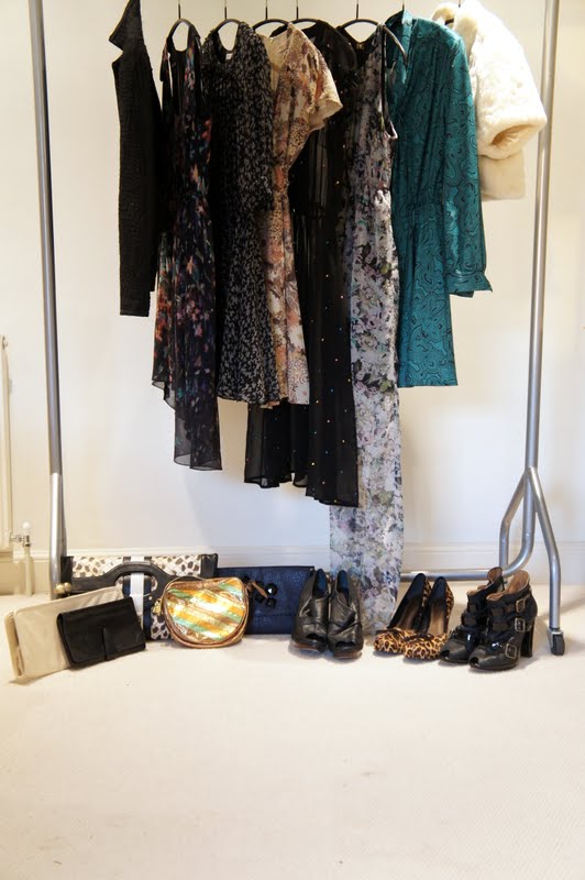 The first thing to do is to go and open your wardrobe, and remind yourself what you’ve got in there. Sometimes the perfect outfit is staring you in the face, you just can’t see it. Pull out anything that you think might work, this was my haul…